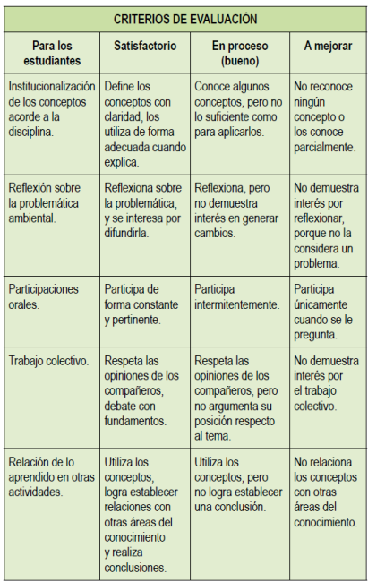 Dicha evaluación es aplicada de forma permanente durante las actividades; posteriormente se conformará el producto final. Se sintetizan los criterios en el siguiente cuadro: