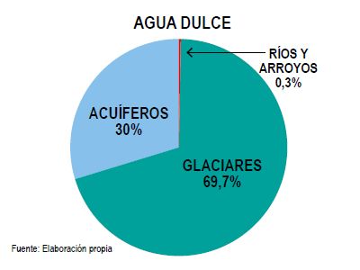Buscamos responder la pregunta: “¿Por qué el agua es escasa y abundante?”. Para ello se hizo hincapié en las hipótesis creadas por los alumnos con anterioridad. Sugerí analizar gráficas y tablas respecto a la distribución del agua, en las que se identificaran porcentajes de agua dulce y salada.