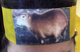 Ejemplo de vinchas que se pueden utilizar para caracterizar a los estudiantes como actores del espacio geográfico. Los materiales que se utilizaron fueron TNT, imágenes impresas y pegamento
